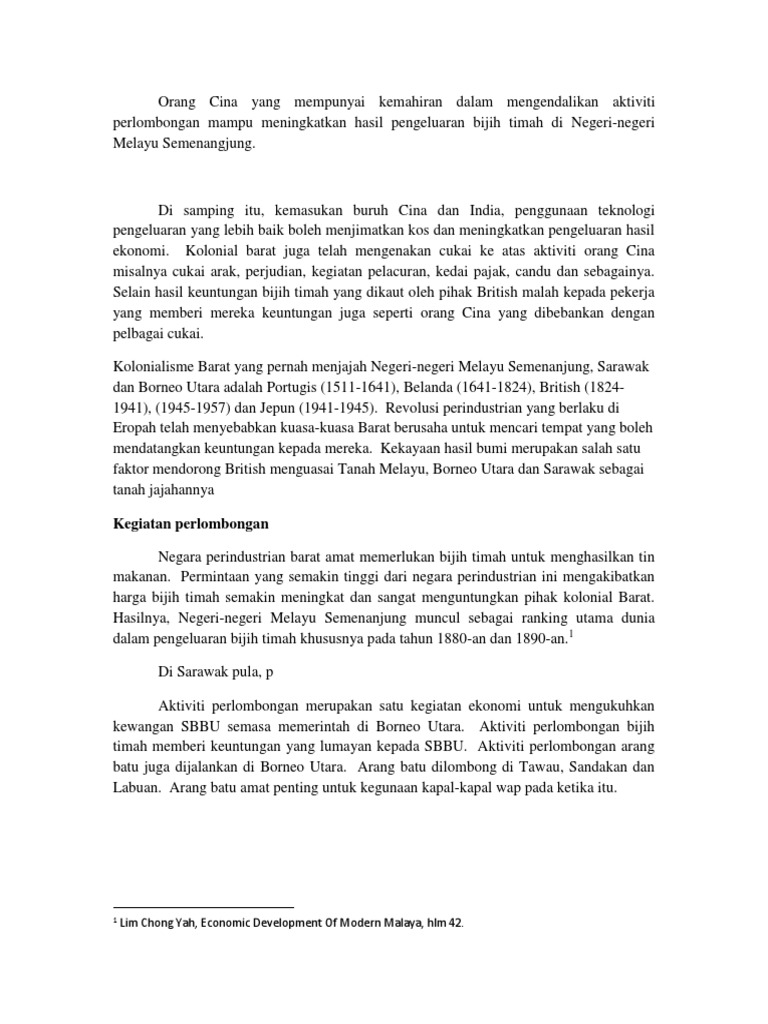 Kegunaan Dan Kepentingan Bijih Timah Di Tanah Melayu Youtube from i.ytimg.com Masyarakat melayu kepada timur tengah kerana. Namun campuran ini dalam erti kata yang sebenar bergaul, tetapi tidak bercantum. Islam yang dianuti oleh masyarakat melayu lahir. Tanah melayu terdiri daripada banyak negeri dan tidak semua negeri mempunyai bijih timah serta tidak semua tanahnya sesuai untuk penanaman getah. Pada 1862, yap ah loy yang sebelum itu bekerja di lombong bijih timah di lukut turut berhijrah ke kuala lumpur. Masyarakat kerajaan alam melayu juga menjalankan pelbagai kegiatan ekonomi seperti pertanian, perdagangan barang didagangkan: Ibukota pemerintahan sekaligus sebagai kepala urusan penambangan bijih timah di bangka. § perkembangan pesat perusahaan bijih timah telah menyebabkan kemasukan buruh dari china.
